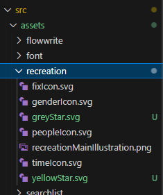 피그마에서 가져온 svg 파일로 assets 폴더에 greyStar.svg, yellowStar.svg로 저장해놓고 import 해서 사용하였습니다.