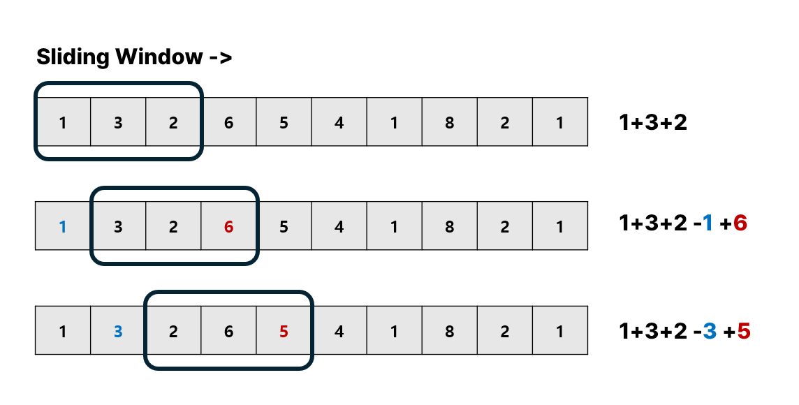 알고리즘에 대한 이해 !'슬라이딩 윈도우'란 ?슬라이딩 윈도우라는 말은 옆으로 '한칸씩 슬라이딩한다 .'라는 말과 배열의 그림이 창문을 모아놓은 것 같아 슬라이딩 윈도우라는 명칭이 되었다