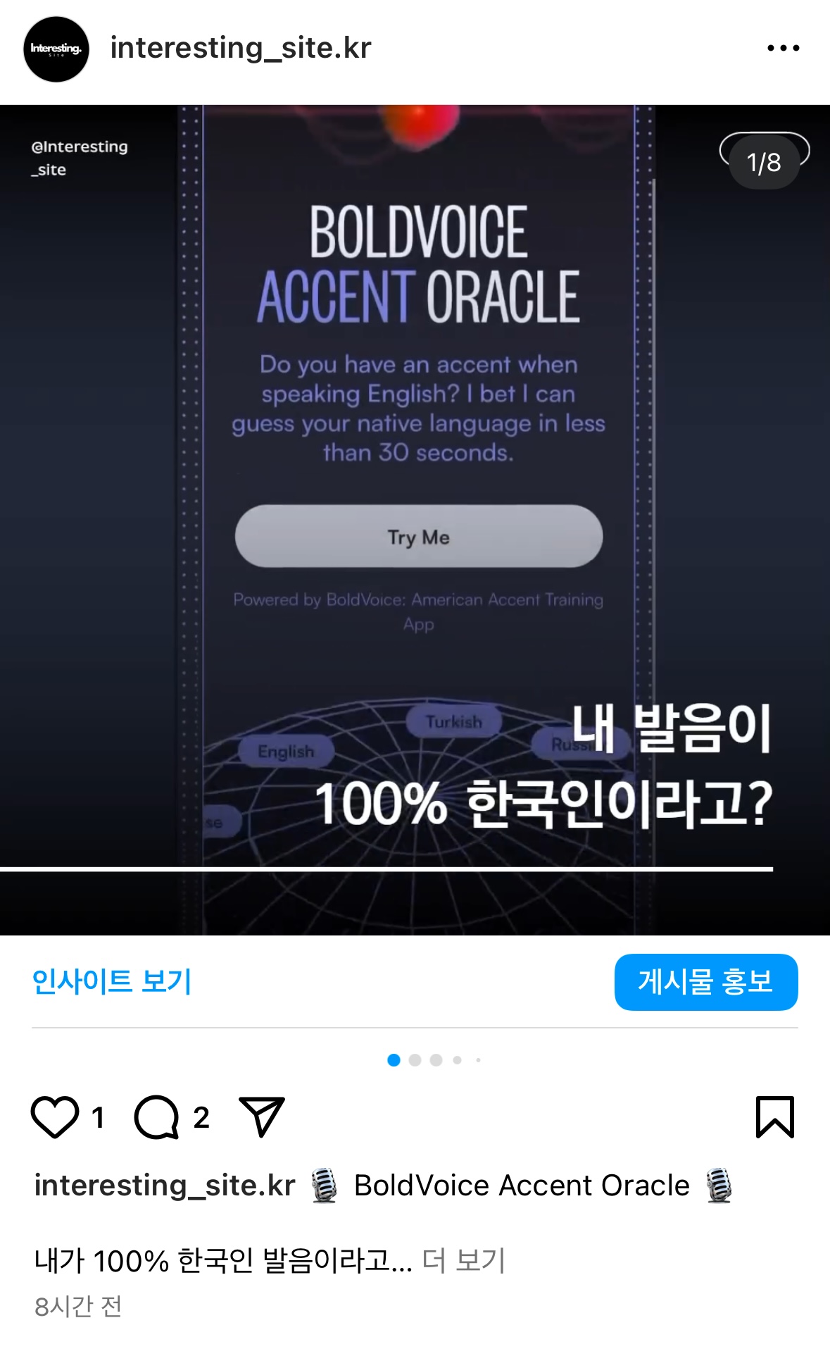 어떤 언어 국가 사람인지 맞춰주는 콘텐츠를