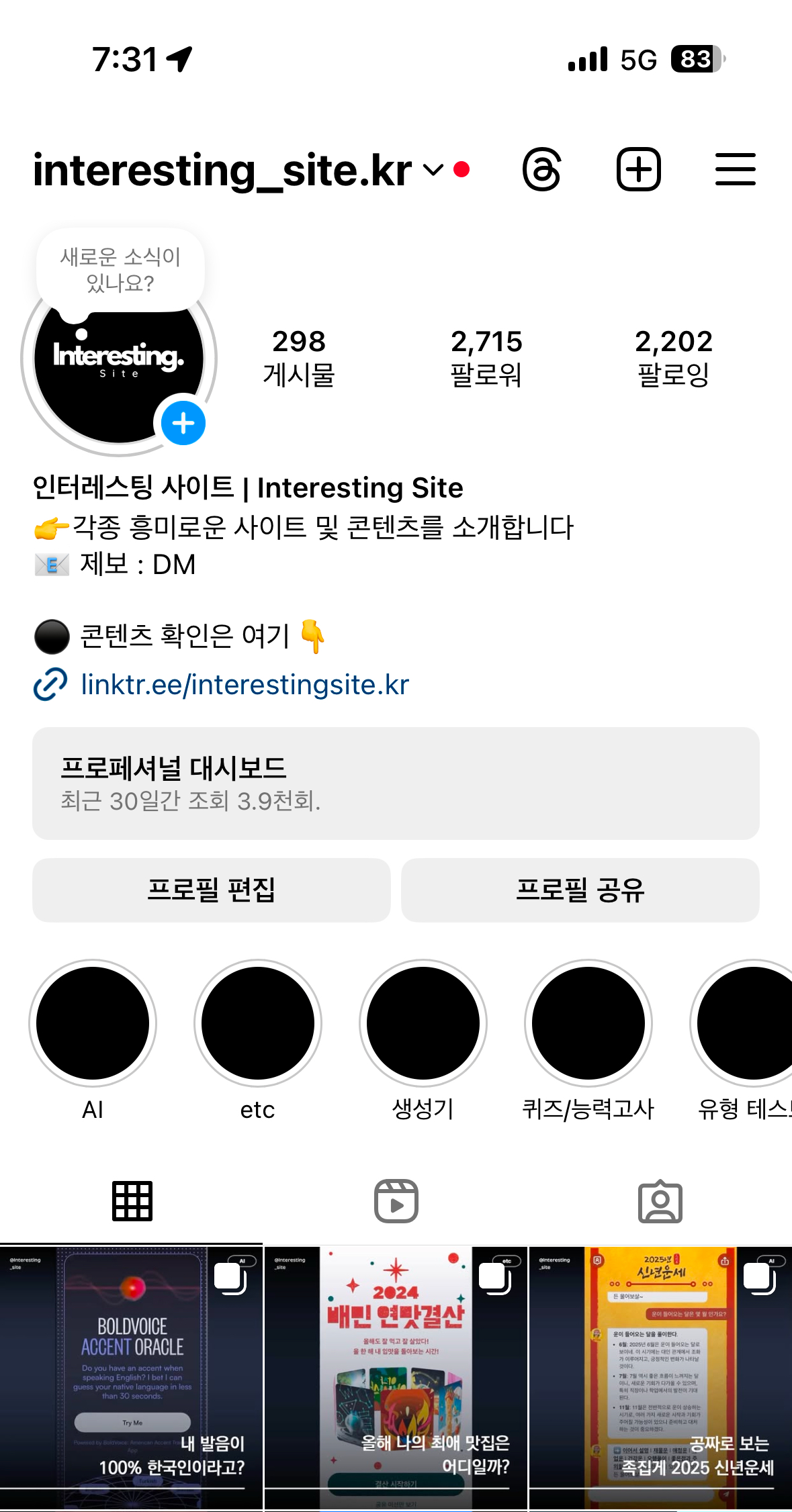 한동안 운영되고 있지 않던 인스타그램 계정인데, 미팅 때 이야기가 나와서 내가 리뉴얼을 맡게 되었다.