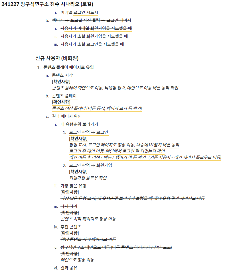 사용자들이 가장 많이 겪는 시나리오를 위주로 전체 검수를 진행하기로 했다.