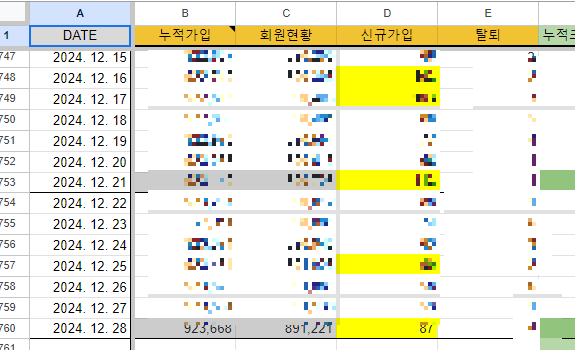 전주에 신규 가입, 설치 등의 데이터들을 보면서,