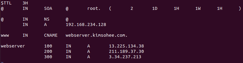 webserver로 들어오면 대응하는 IP 주소를 3개 설정해준 것 (100, 200, 300이 순서의 역할)