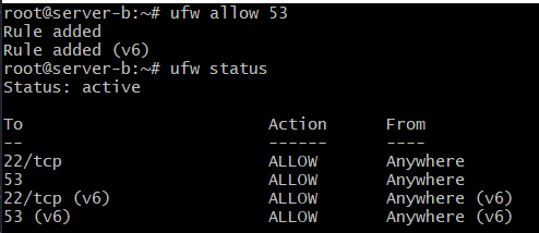 방화벽 설정 (네임 서버의 포트는 53번 사용)