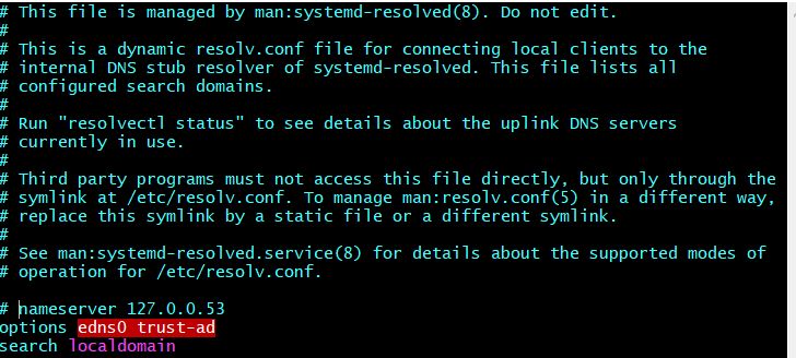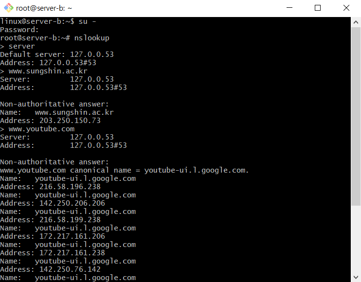 server : 로컬네임서버의 주소 -> 127.0.0.53