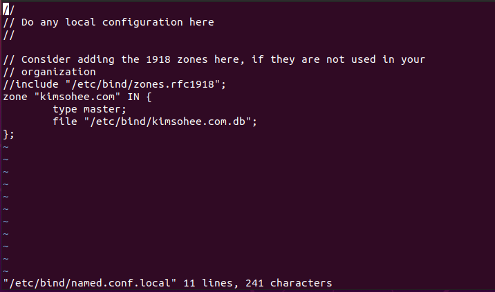 /etc/bind/named.conf에 들어갔을 때 원래의 설정 파일이 존재해야하는데 아예 새로운 파일로 만들어졌다.