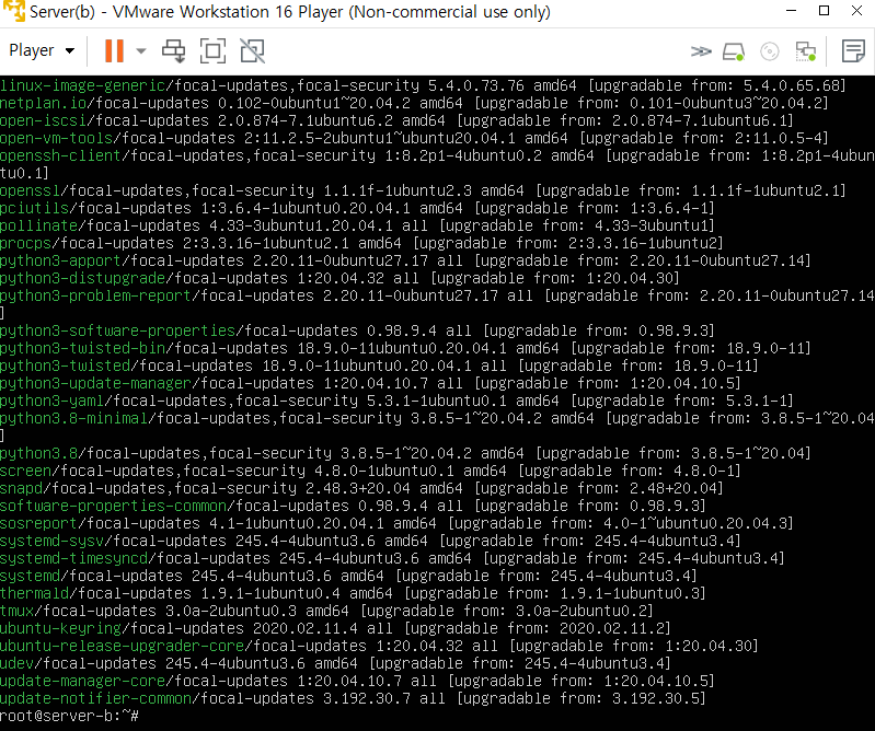 apt update를 하면 97 packages can be upgreaded Run 'apt list --upgradable' to see them. 이라고 나온다. apt list --upgradable이라고 했더니 업그레이드 대상이 되는 많은 리스트들을 확인할 수 있었다.