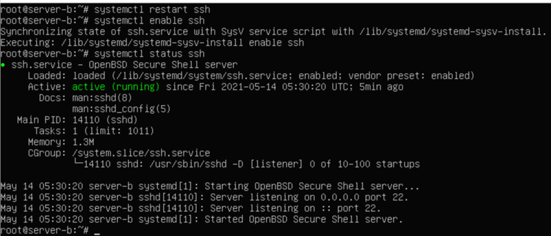 systemctl enable ssh #server(b)를 동작시킬 때 마다 openssh를 사용하도록 설정