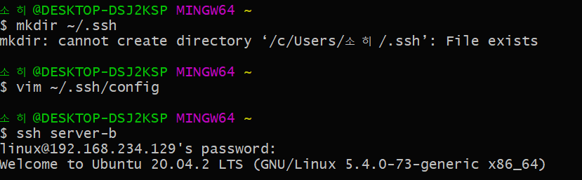 ssh server-b 만 입력하면 접속 가능 (② 방법)