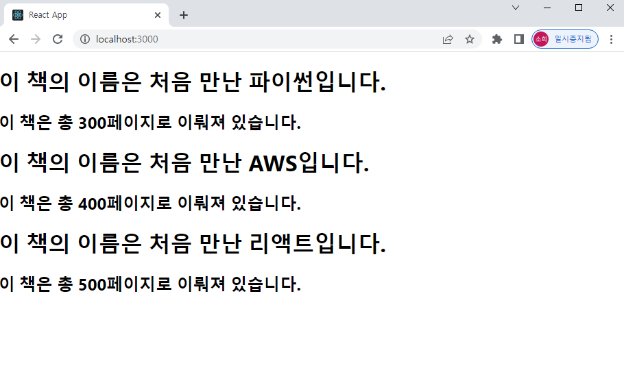 Library 컴포넌트는 총 세 개의 Book 컴포넌트를 렌더링하고 있음