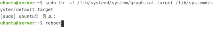 ln -sf /lib/systemd/system/graphical.target /lib/systemd/system/default.target : 텍스트 모드 -> 그래픽 모드