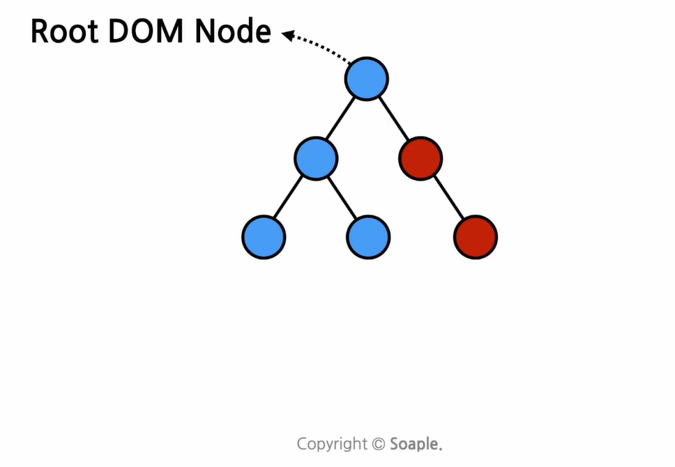 virtual DOM 그림에서 가장 최상단에 있는 동그라미가 Root DOM Node