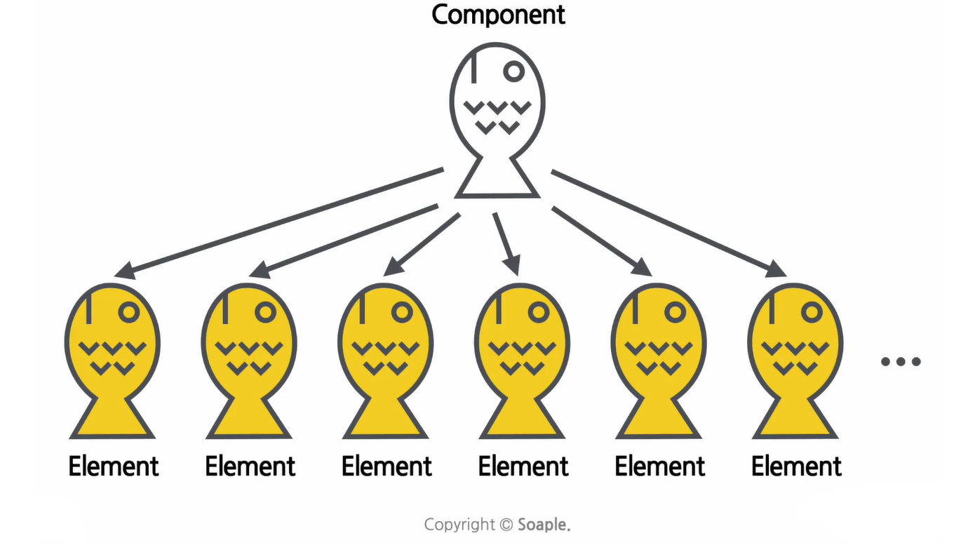● 붕어빵이 구워져서 밖으로 나오는 과정은 element를 생성하는 것