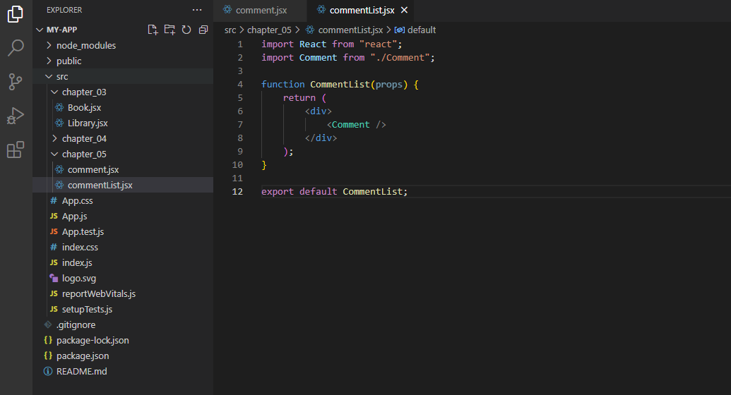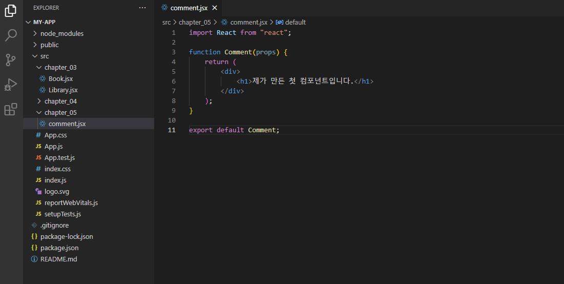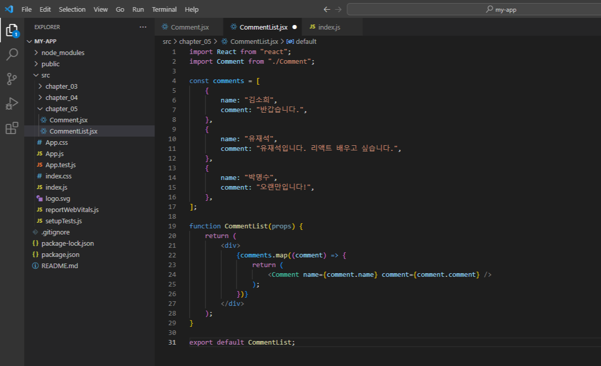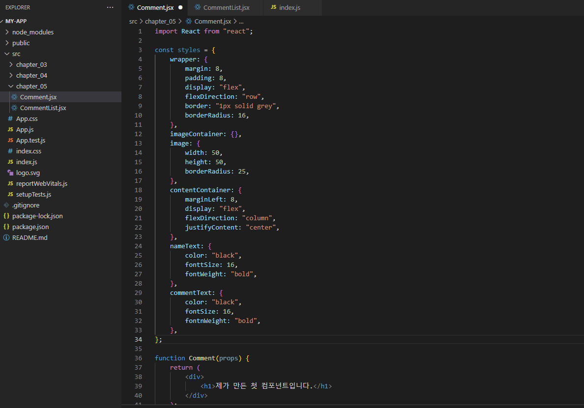 3. 만든 폴더에 comment.jsx라는 파일을 생성