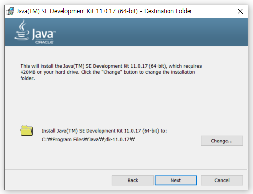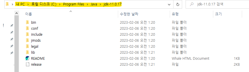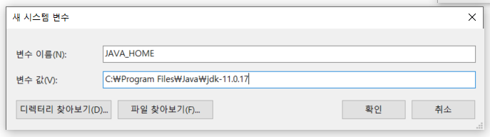 C:₩Program Files₩Java₩jdk-11.0.17을 입력했습니다.