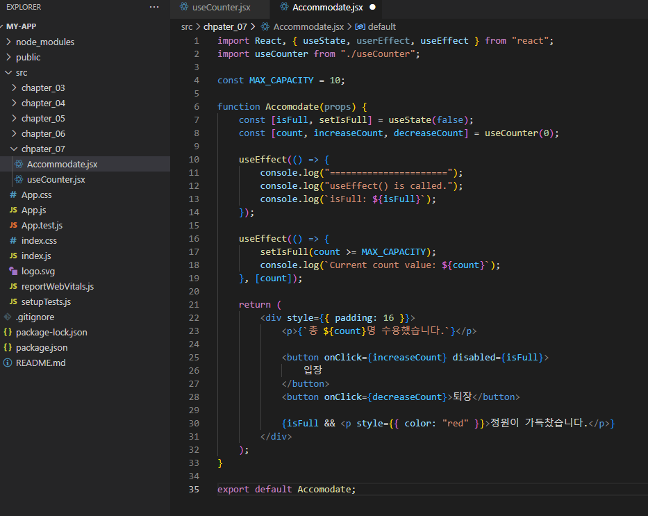 useCounter 훅을 사용하는 Accommodate라는 함수 컴포넌트