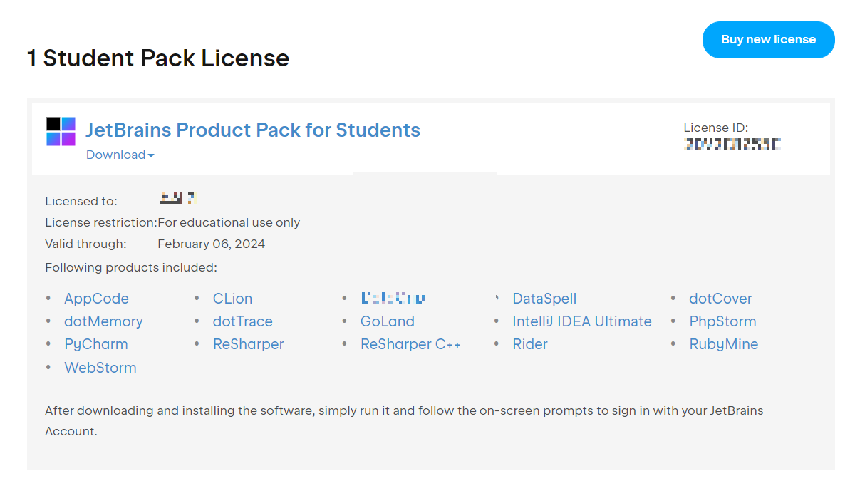 - 비영리적인 교육 목적으로만 사용해야 하고 학생이거나 교사인 한, 무료로 갱신할 수 있다고 합니다.