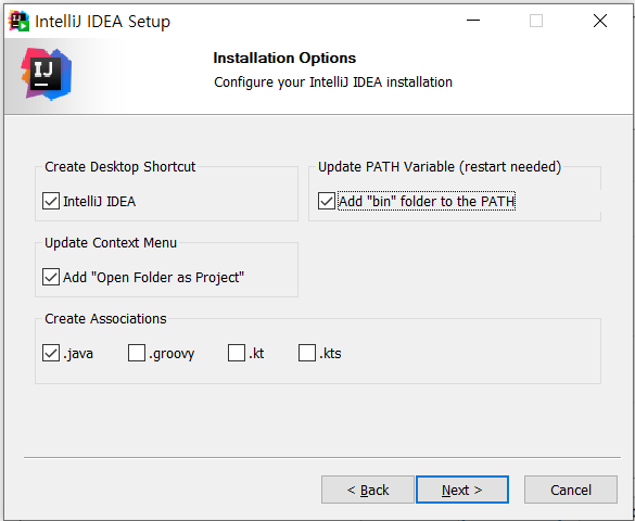 설치가 완료된 후 IntelliJ를 실행시키면,