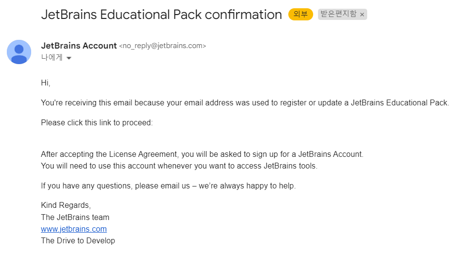 학교 메일 계정을 확인해보면 위와 같은 메일이 온 것을 확인할 수 있습니다.