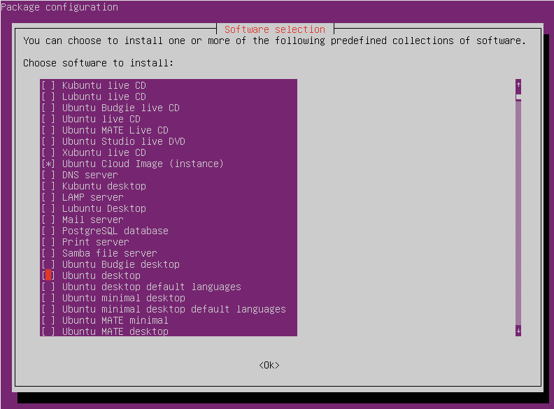 위의 사진처럼 tasksel을 실행한 후 스페이스바를 눌러 Ubuntu desktop 선택하고 ok 버튼을 누르면 설치가 가능하다고 하셨는데 ok 버튼에 두고 엔터키를 눌러도 설치가 되지 않았다. 여러 번의 시도 후 ok에 스페이스바를 누르고 조금 기다렸더니 설치가 진행되었다.