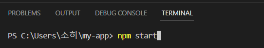 npm start 명령어를 실행합니다.