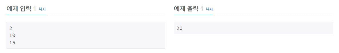 첫째 줄에 정수 N이 주어진다. 다음 N개의 줄에는 각 로프가 버틸 수 있는 최대 중량이 주어진다. 이 값은 10,000을 넘지 않는 자연수이다.