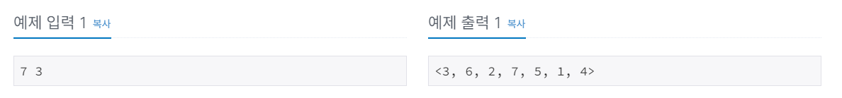 예제와 같이 요세푸스 순열을 출력한다.