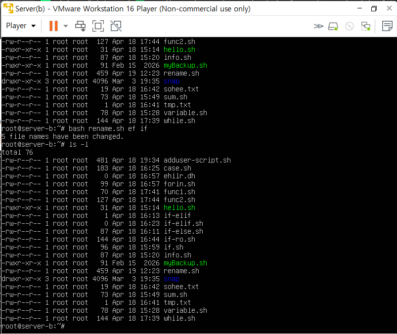 ls -l을 했을 때 ef라는 중복된 이름들을 전부 if로 바꾸도록 실행해본 화면이다.