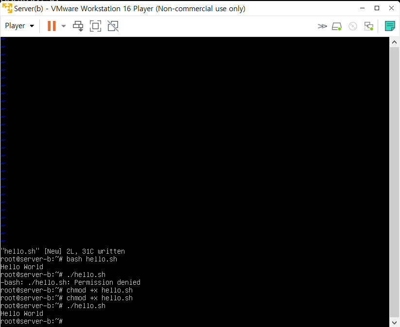 * ./hello.sh 를 바로 실행했을 때 권한이 없다고 뜸 -> chmod +x hello.sh