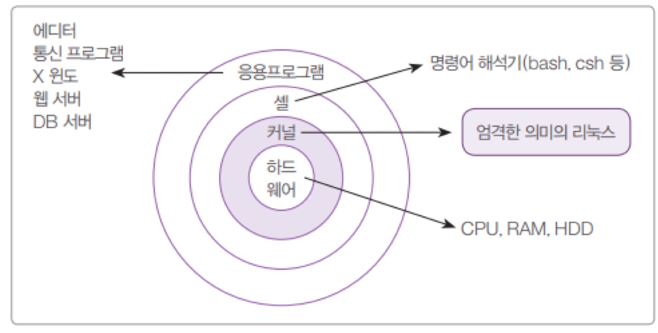 커널은 하드웨어를 제어하고, 사용자는 shell을 통해 커널에 명령을 전달한다.