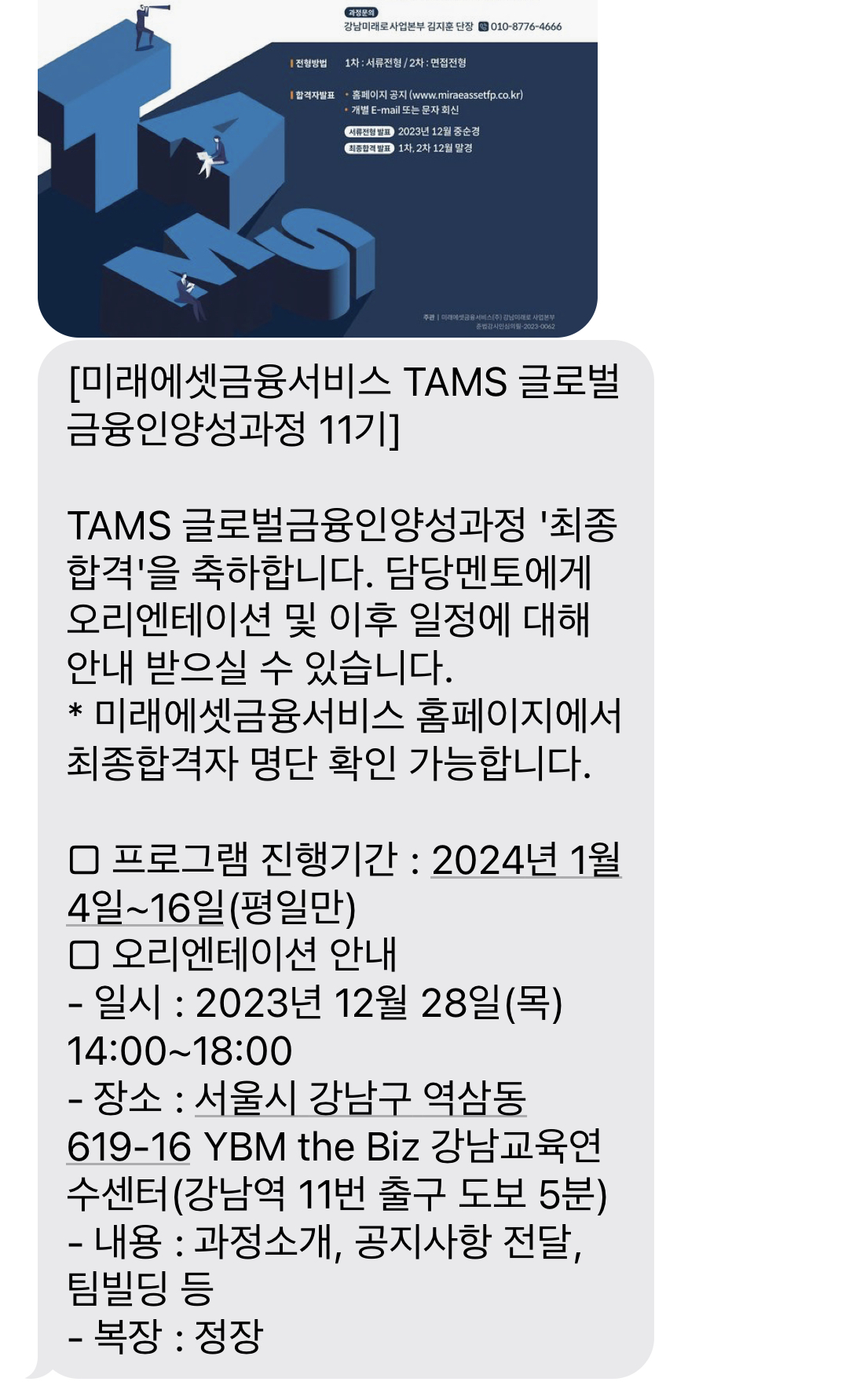 면접보고 바로 3-4일 뒤에 합격 및 오티 안내 문자를 받았습니다-!