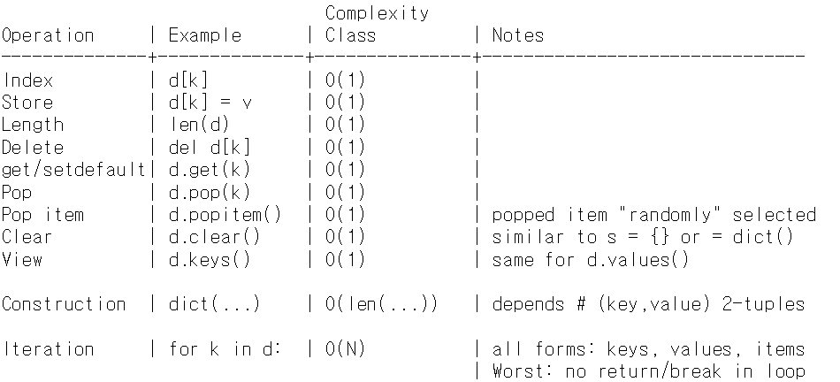 - set 함수는 내부적으로 해시 테이블을 사용하여 데이터를 저장하기 때문에, in 연산을 평균 O(1)의 시간복잡도로 수행할 수 있습니다.